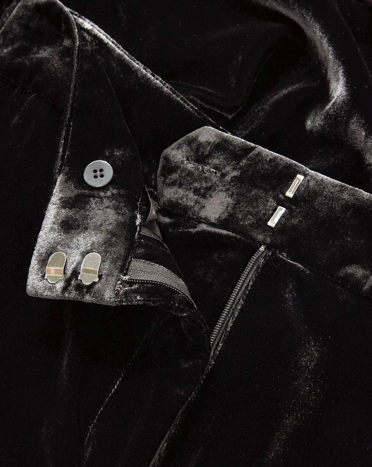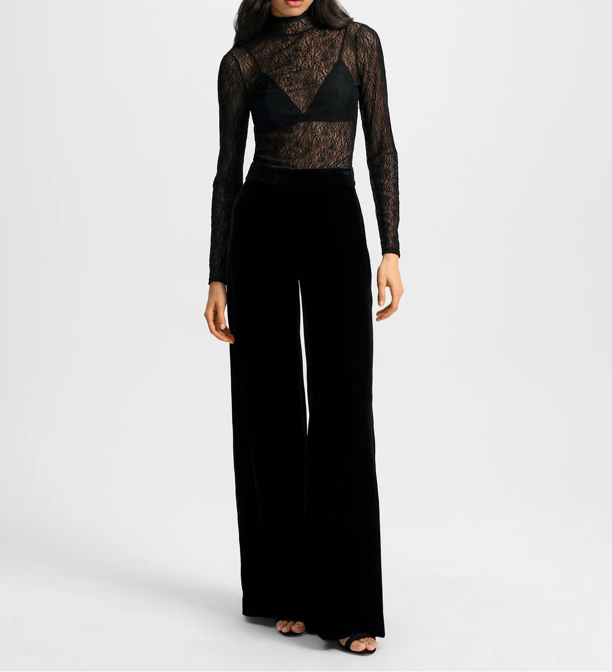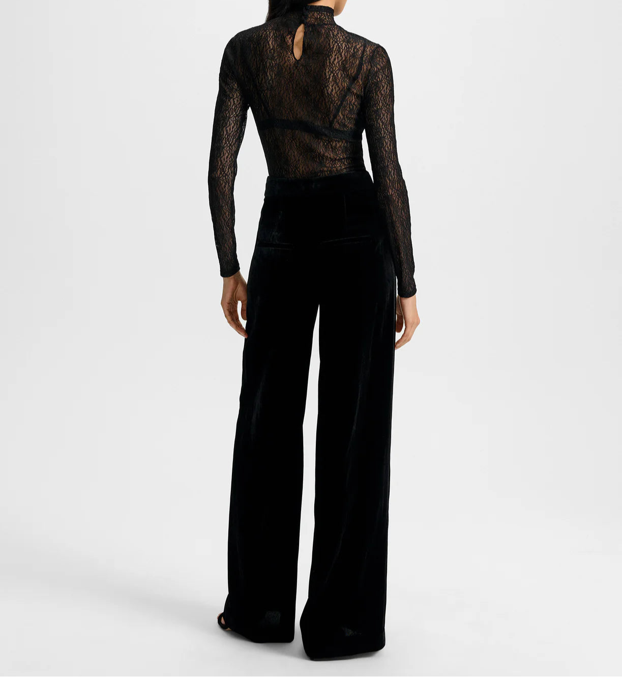 The RSVP-ready pant. Crafted from soft black velvet, the Alex features a high-waisted, wide-leg silhouette for a leg-lengthening effect. Welt pockets at the back and a hidden hook-and-bar closure complete the look. Perfect for date night or any dressy occasion, style it with a slinky top—or with the matching Issel jacket for a sharp set.