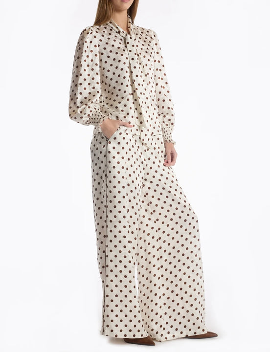 The Marta Pant in Brown Polka Dot is an effortlessly chic statement designed to bring ease and personality to everyday dressing. Featuring a flowing wide-leg silhouette, this style moves beautifully with every step while maintaining a relaxed yet refined feel.