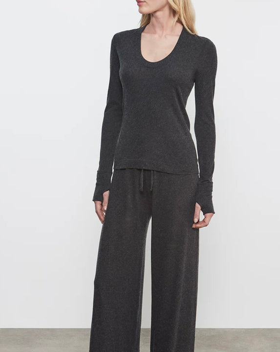 Charcoal Cashmere Easy Cuffed U Top
