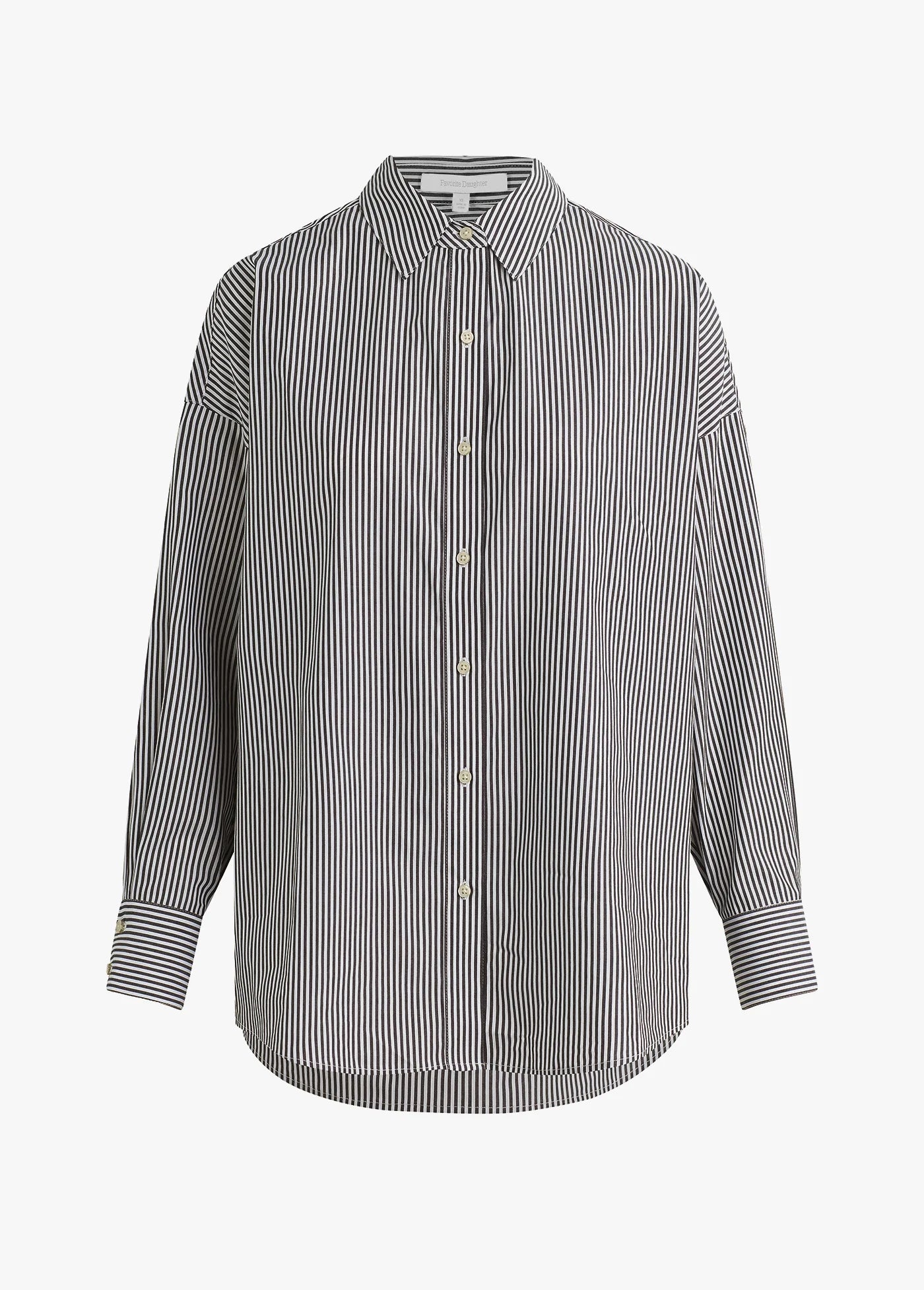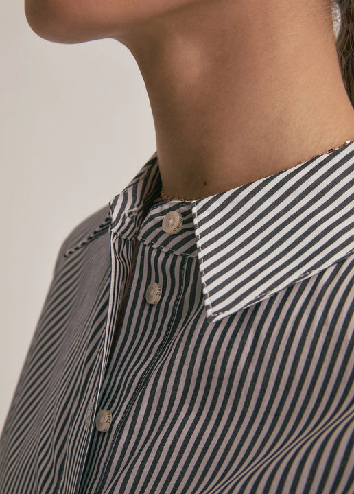 With a relaxed fit and pointed collar, the Ex-Boyfriend Shirt in Dark Charcoal Stripe is an oversized button up cut from soft cotton. Our favorite way to wear this shirt is, actually, any way–tied, tucked, half-tucked, and unbuttoned.