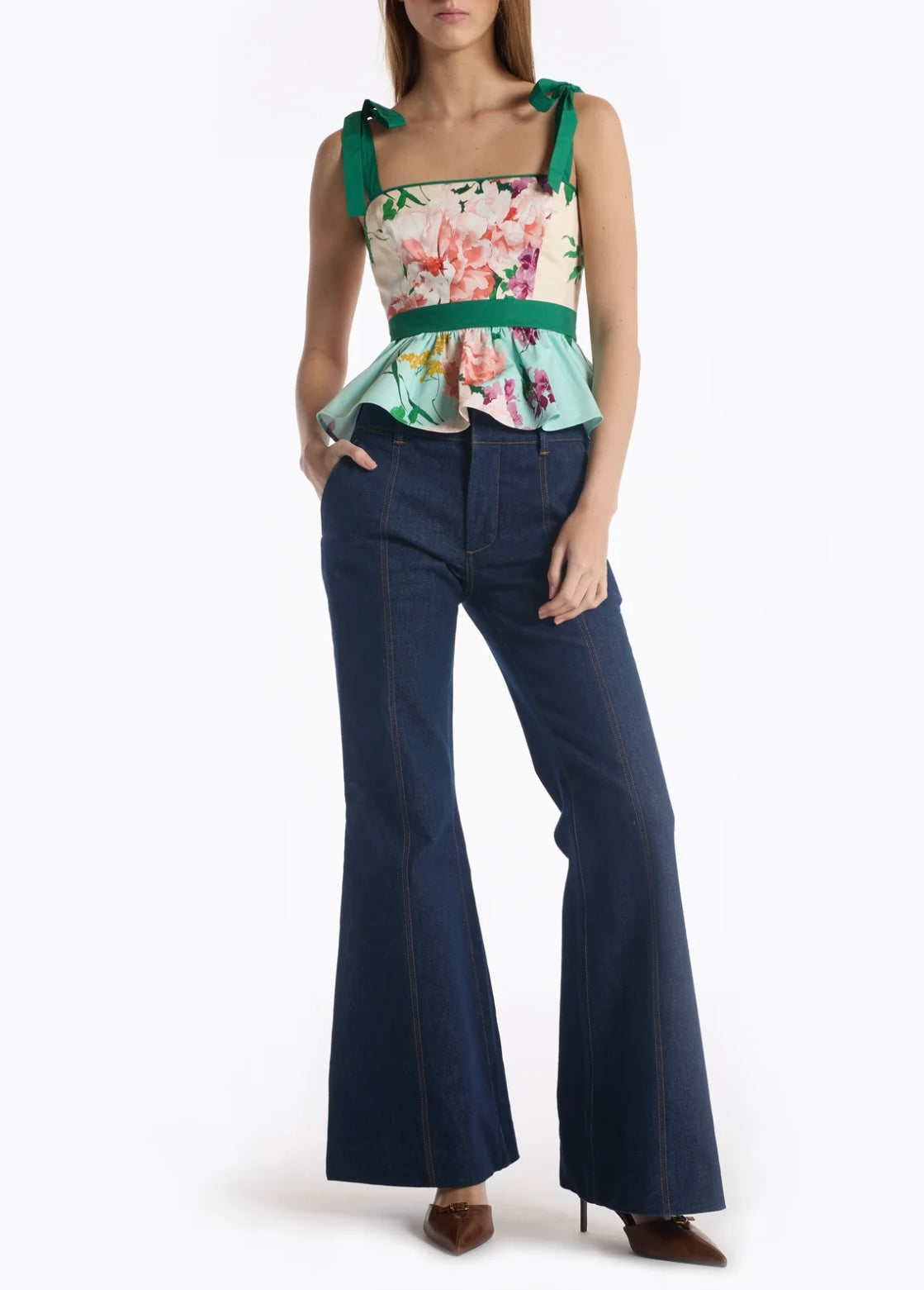 The Cedric Top is a fresh, feminine silhouette designed to make a statement while remaining effortlessly wearable. Crafted in a structured yet lightweight cotton, this peplum style features a softly contoured bodice that flatters through the waist before flowing into a flounced hem.