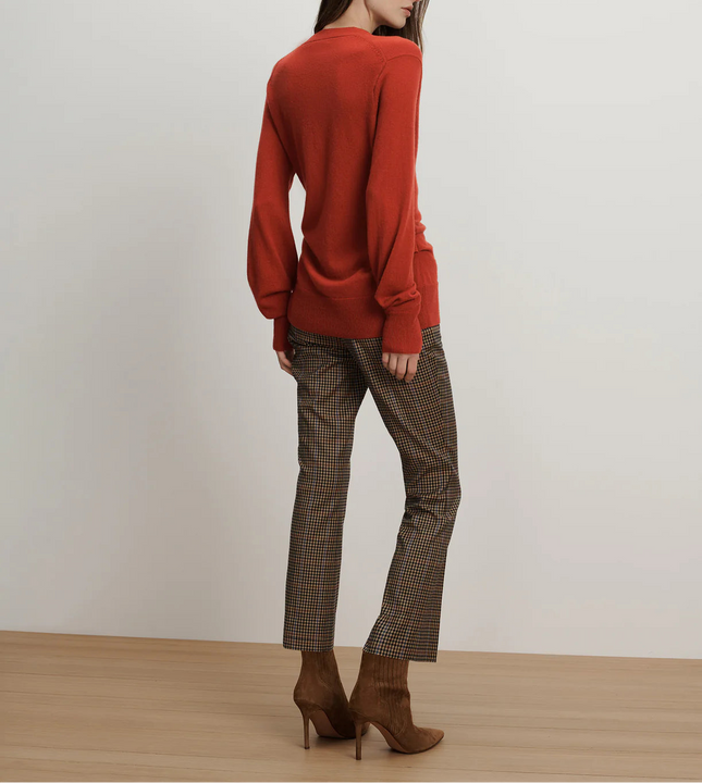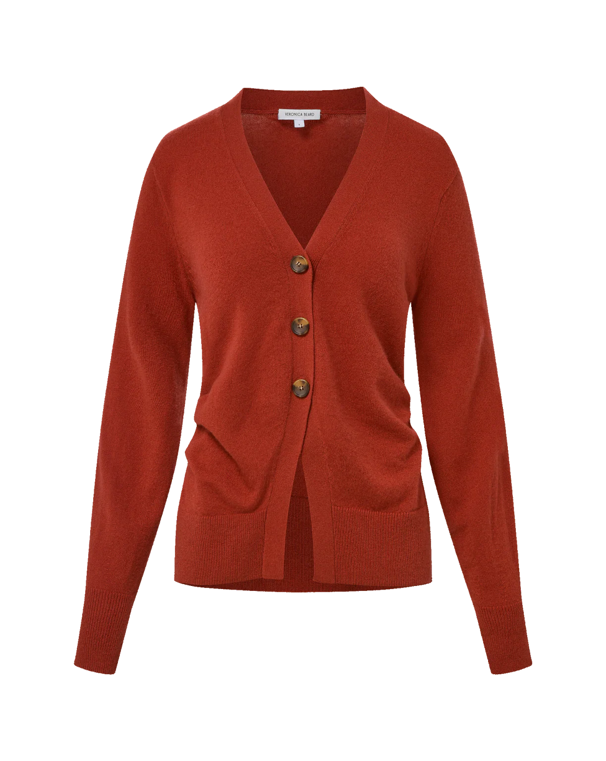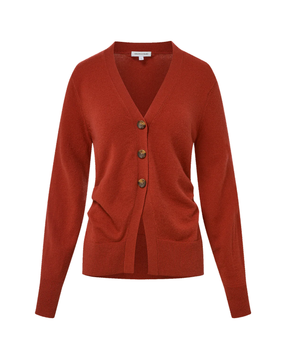 The cardigan that works overtime. Spun from red cashmere with a luxuriously soft feel, the Lamotte features a deep V-neckline and a split hem for flattering shape. Oversized blouson sleeves and ribbed trims complete the design, making it the perfect finish to any look. Style with trousers for an elevated take or denim for a more laid-back feel.