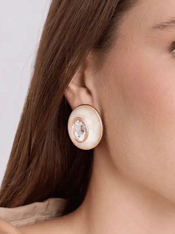 The Stephanie Oval Button Earrings feature a timeless combination of mother of pearl with crystal glass stones, making them the perfect accessory for both casual days and elegant evenings. Designed with a clip back for a secure and comfortable fit, these earrings are lightweight, versatile, and effortlessly chic-a true must-have for every wardrobe.