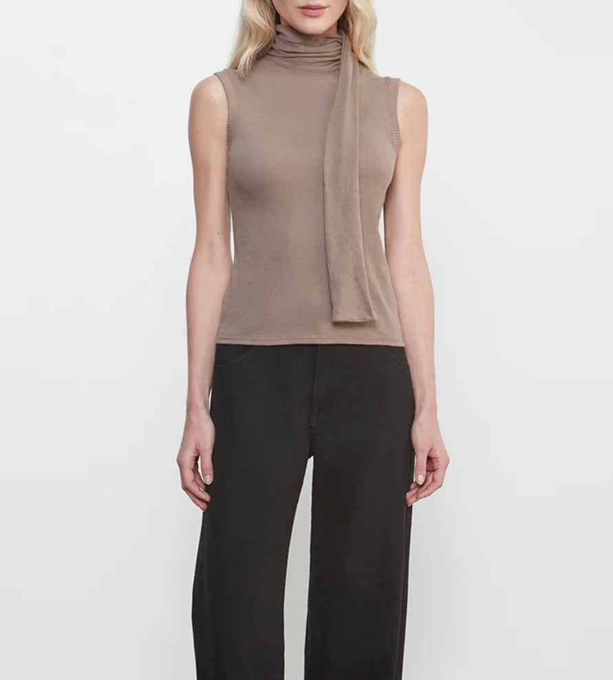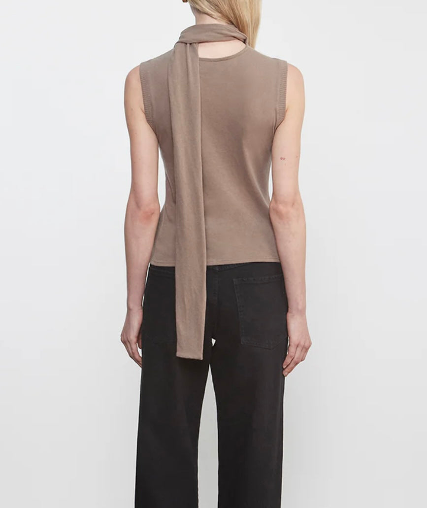 Walnut Cashmere Jersey Sleeveless Scarf Top