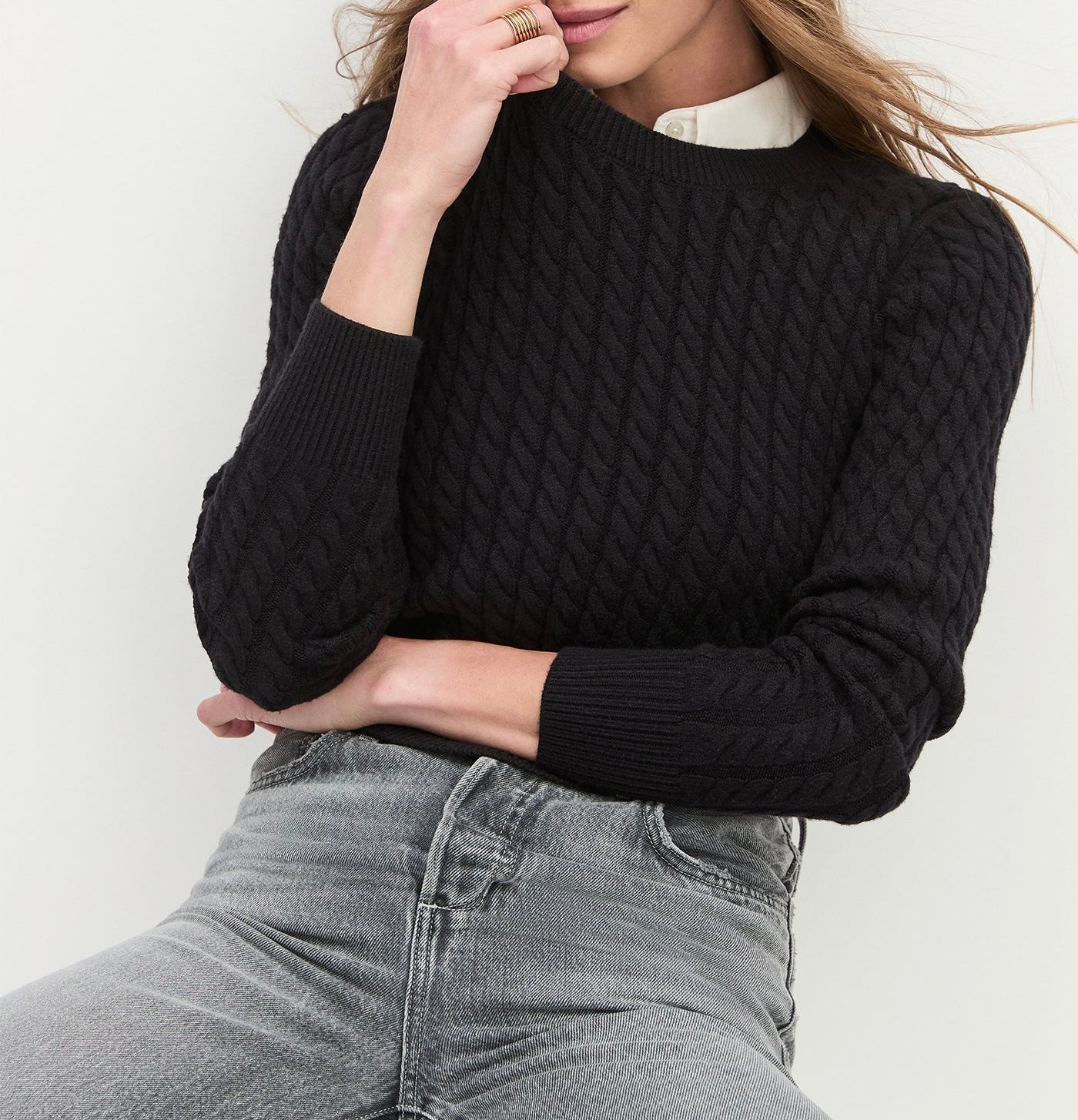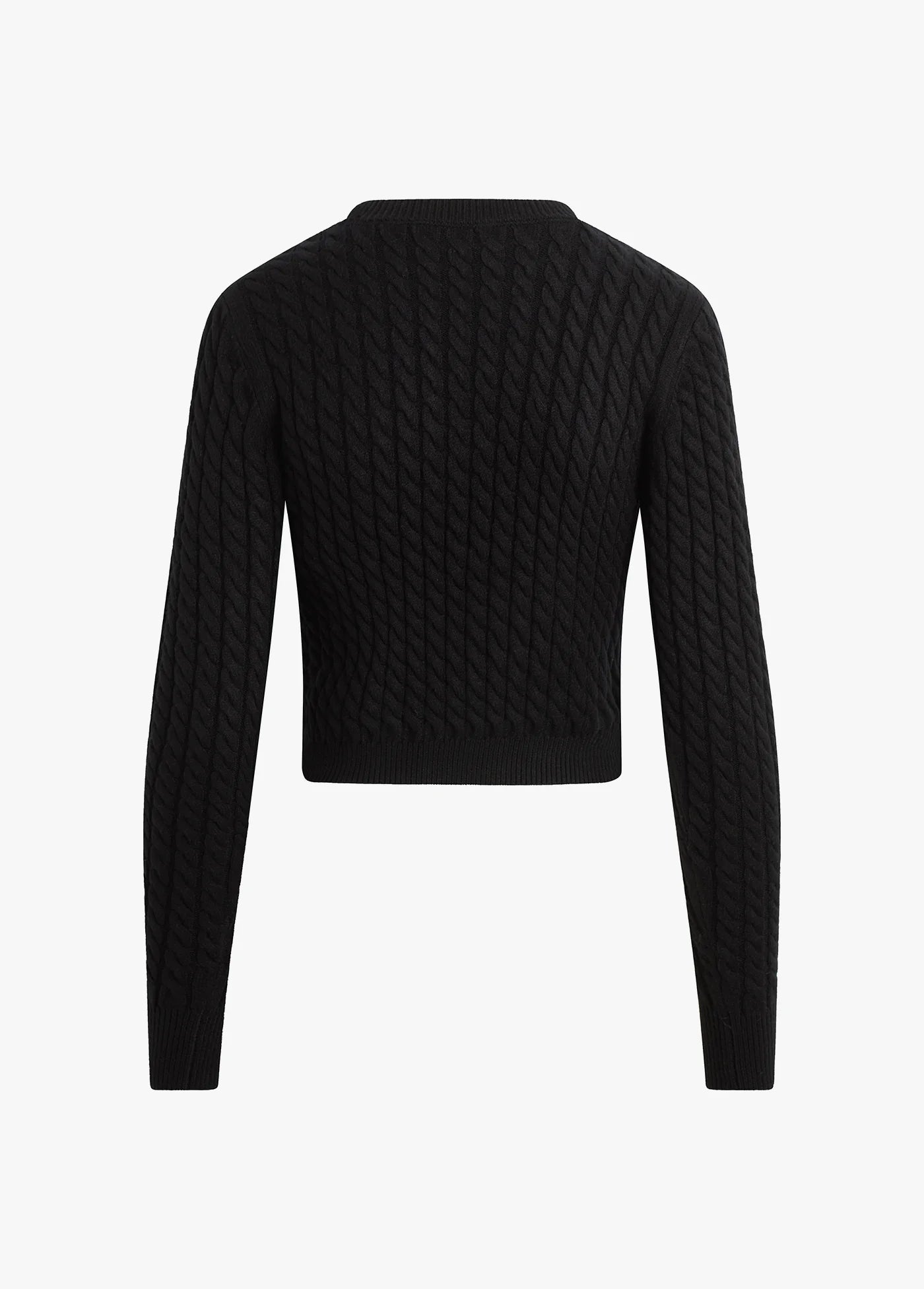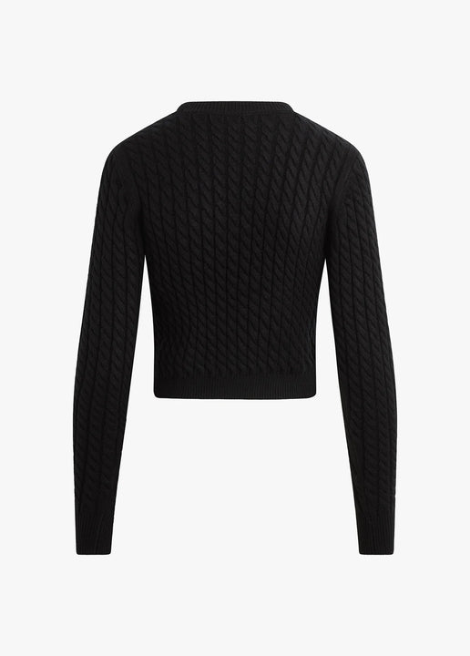 Cropped with a classic fit and fine cable stitching, this long-sleeve sweater is knit from a soft viscose blend that feels as good as it looks.