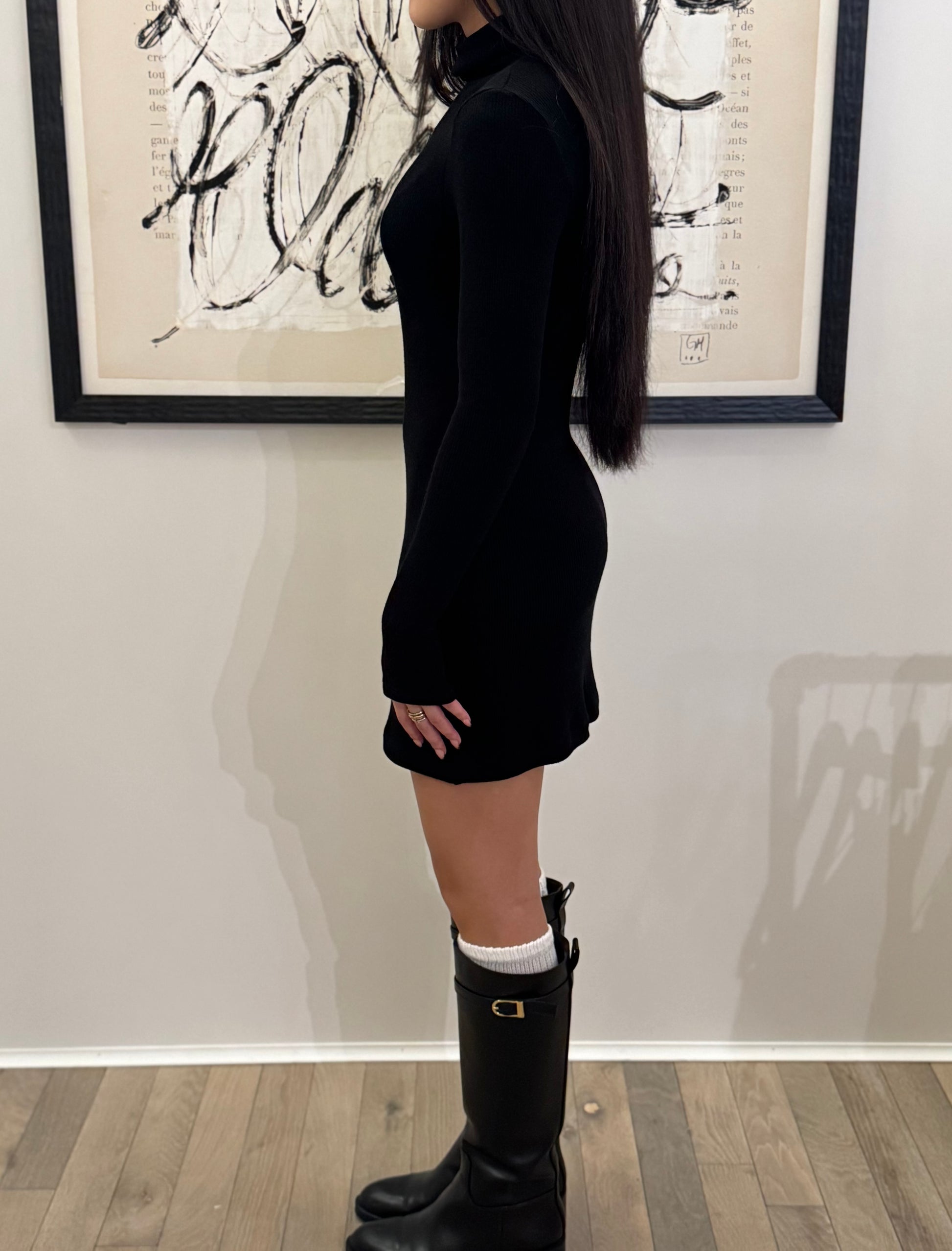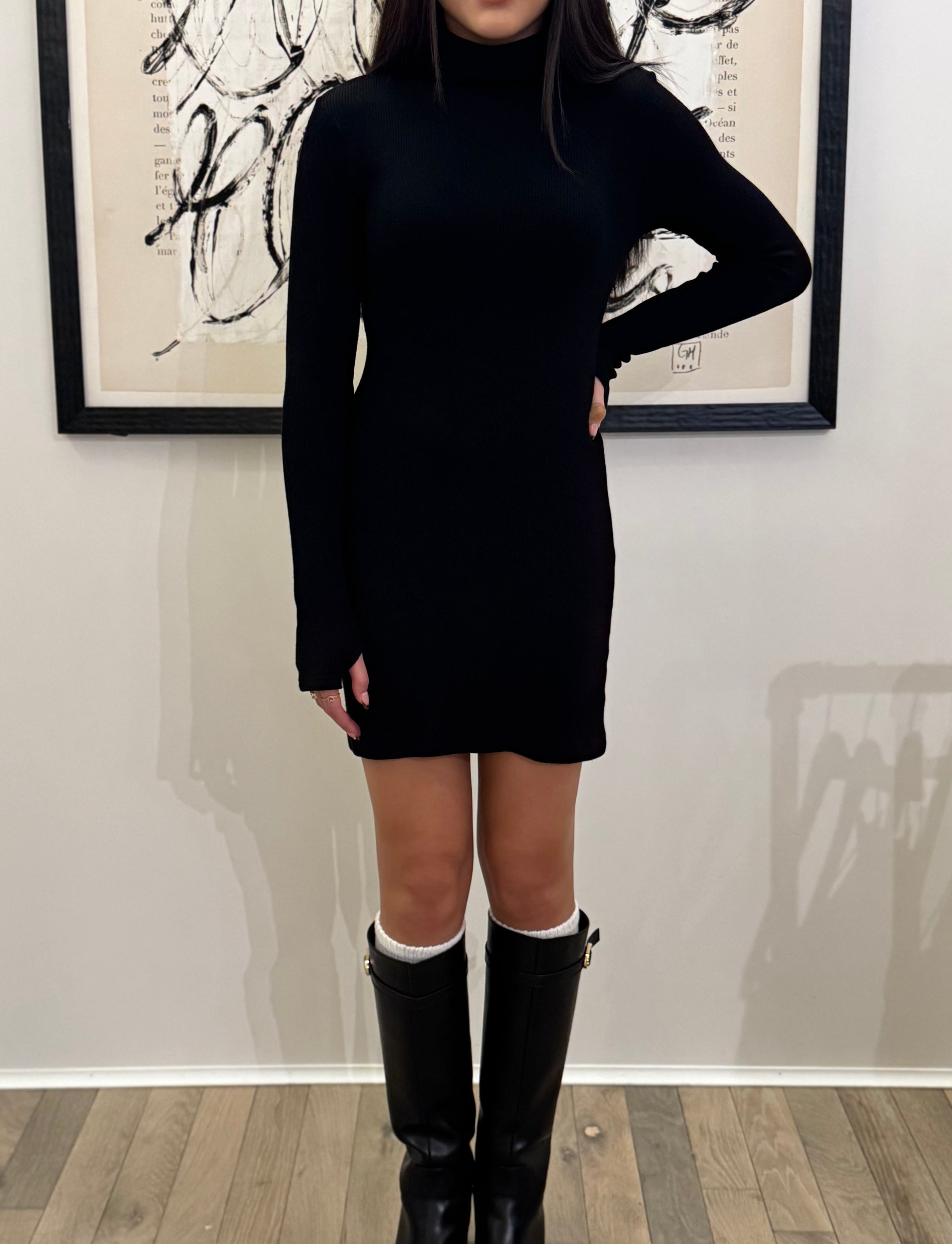 Black Knit Tunic Mini Dress