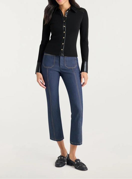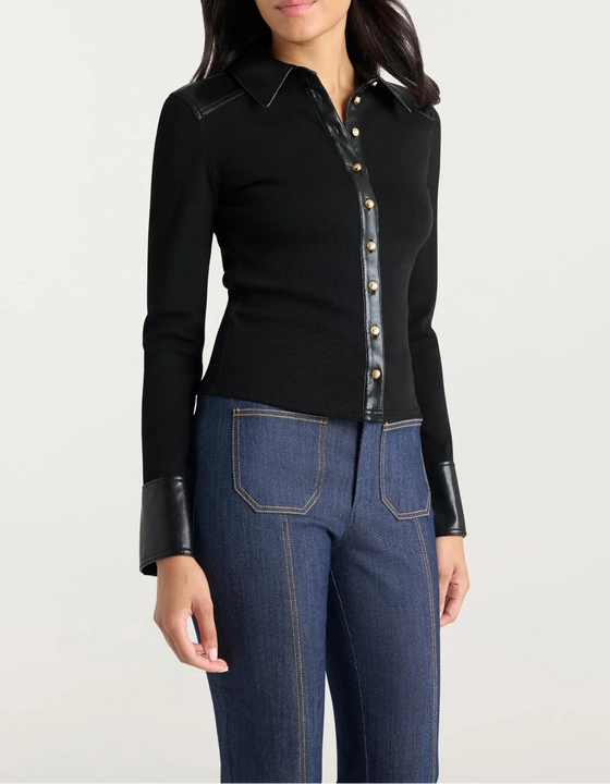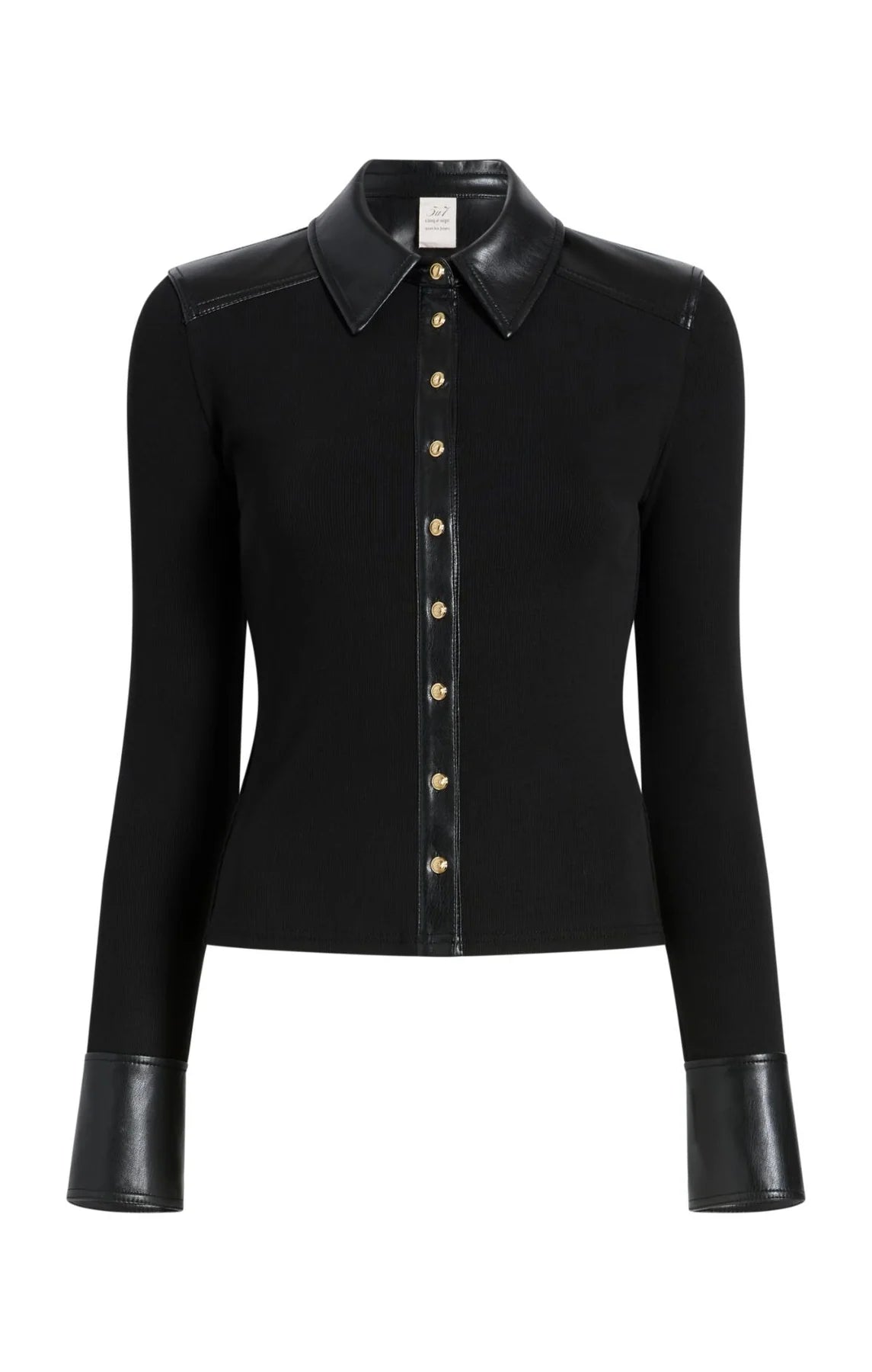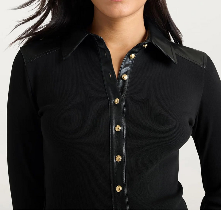 The Magali Top offers a sleek, fitted silhouette with its collared neckline and button-up front. Designed with long sleeves for a polished look, this top effortlessly combines sophistication and style, making it a perfect choice for both professional and chic casual wear.