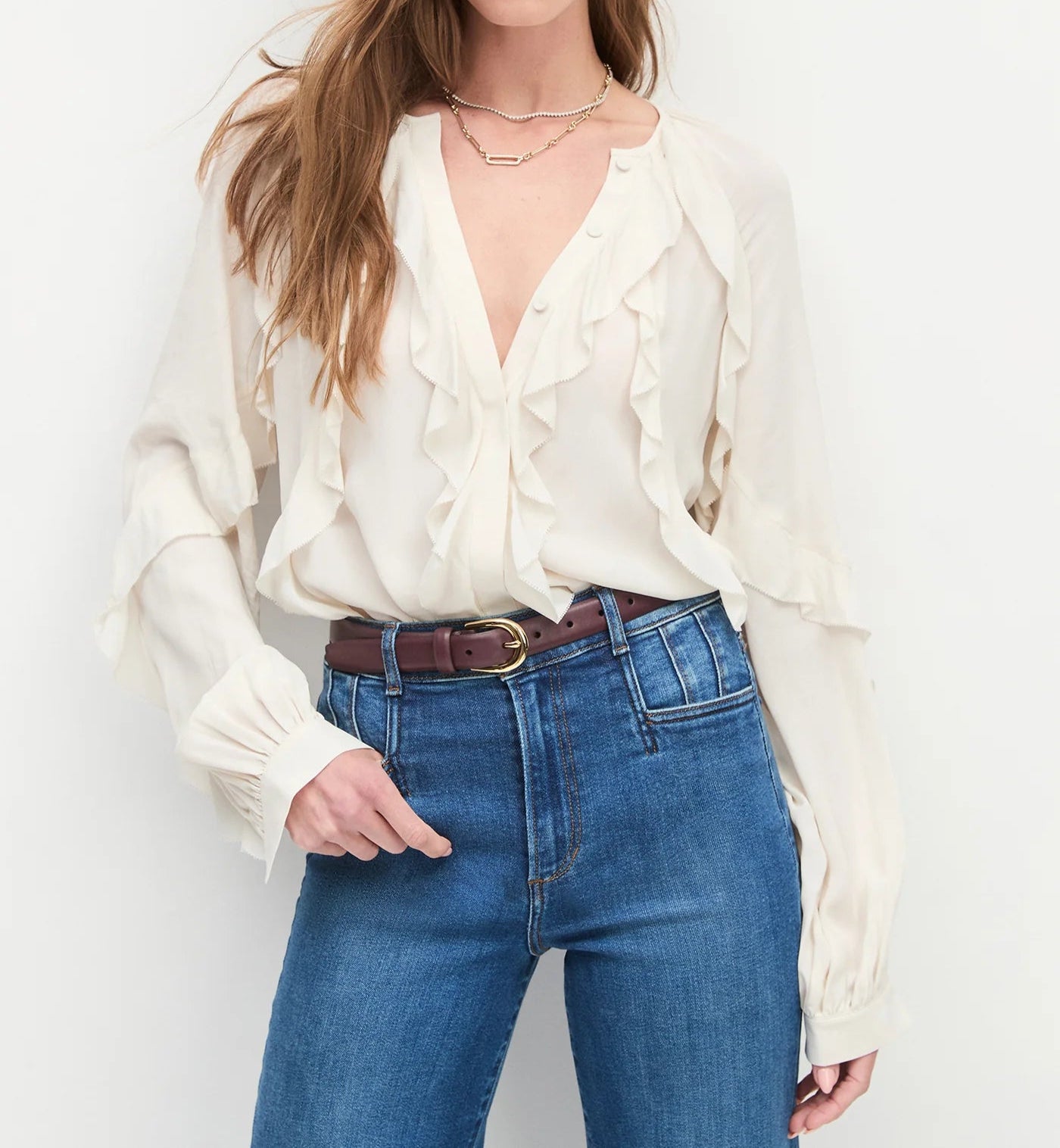 Romantic and soft with just the right amount of ruffles. Full sleeves, crew neckline, and a relaxed shape in airy viscose.
